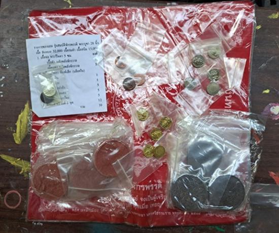 พระชุดสมนาคุณรุ่นสมบัติจักรพรรดิ์์ พ.ศ.2549 มีผ้ายันต์12ผืนพระเนื้อผง10องค์ เหรียญเนื้อเงิน1เนื้อนวะ1 ทองแดงทองแหลือง อัลปาก้ารวม15รวม39ชิ้น