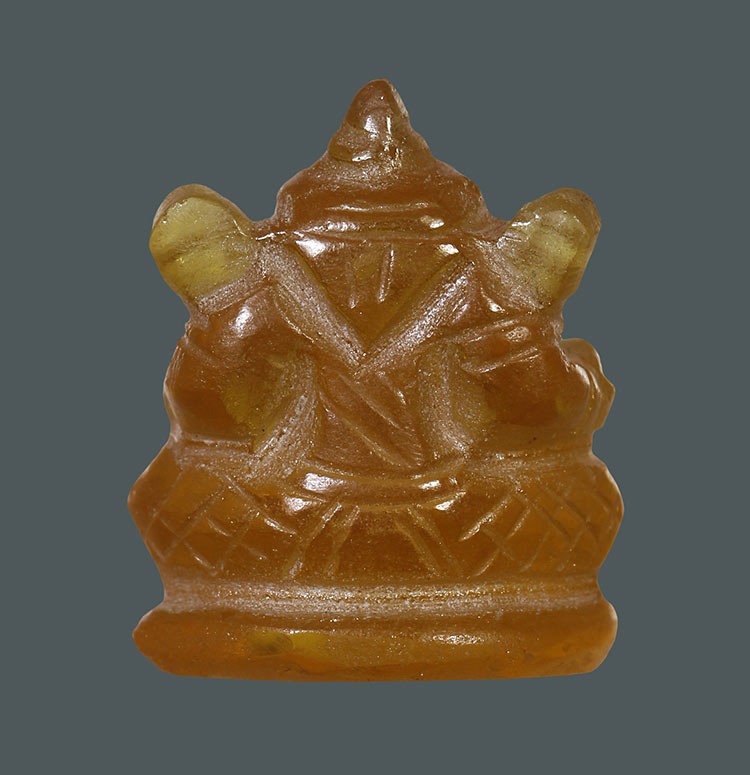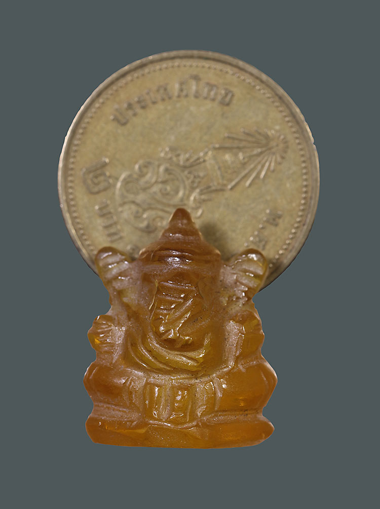 วัดใจ**เครื่องราง พระพิฆเนศแกะจากหินอำพันเก่า สีเหลือง.
