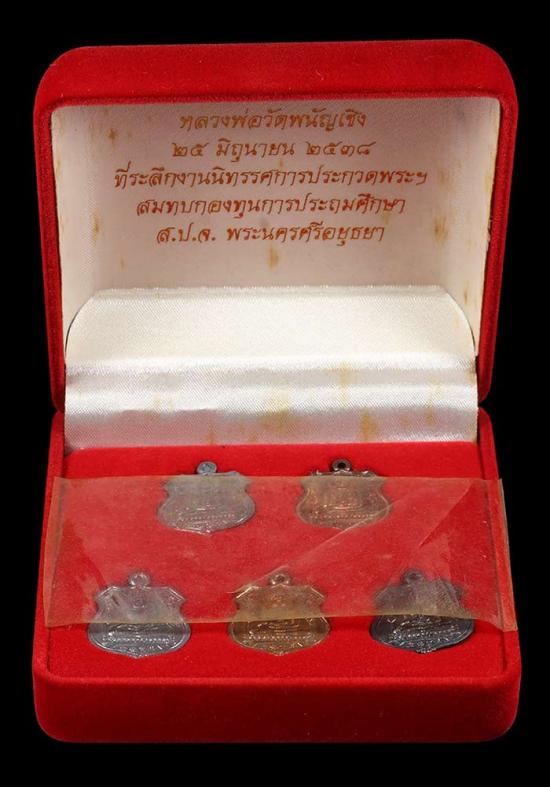 100 / หลวงพ่อวัดพนัญเชิง 25 มิถุนายน 2538 ที่ระลึกงานนิทรรศการประกวดพระฯ สมทบกองทุนการประถมศึกษา ส.ป.จ. พระนครศรีอยุธยา เงิน-นวะ-ทองแดง-ดีบุก..สวยเดิมทุกองค์