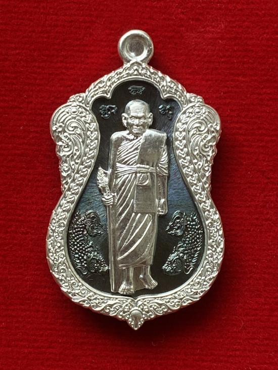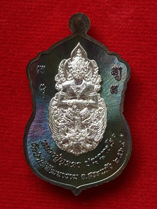 เคาะเดียวแดง หลวงปู่บุดดา รุ่น เสมาอายุยืน รายการที่7 เนื้อ นวะขอบเงิน หน้ากากเงินหน้าหลัง