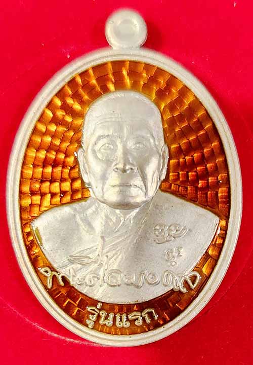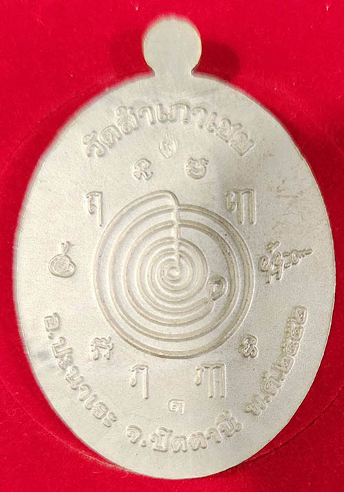 เหรียญรูปไข่หลวงพ่อทอง วัดสำเภาเชย พิมพ์ครึ่งองค์รุ่นแรก เนื้อเงินลงยาสีแดง ตอกโค๊ต ตอกเลข 1