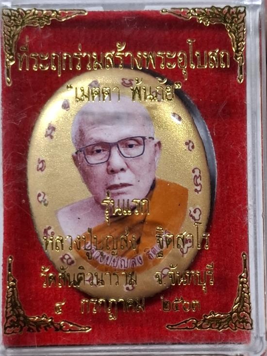 ล็อกเก็ตเมตตา พ้นภัย รุ่นแรก หลวงปู่บุญส่ง วัดสันติวนาราม จ.จันทบุรี พิมพ์ใหญ่ ฉากทอง กล่องเดิม