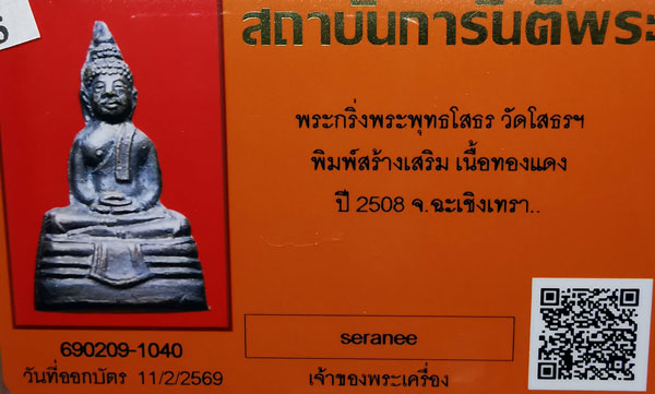 พระกริ่งพระพุทธโสธร วัดโสธรฯ เนื้อทองแดง กริ่งดัง ปี2508 จ.ฉะเชิงเทรา + บัตรG-pra สภาพเดิมค่ะ
