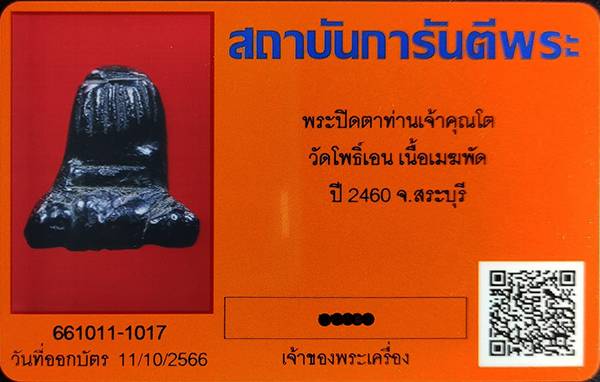 พระปิดตาเข่าบุ๋มวัดโพธิ์เอน เนื้อเมฆพัด ท่านเจ้าคุณโต วัดโพธิ์เอน(วัดสมุห์ประดิษฐ์)จ.สระบุรี ปี พ.ศ. 2460 หลวงพ่อทับ วัดทอง เป็นประธานในพิธี พร้อมบัตรG....
