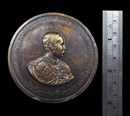 เหรียญขนาด 7 เซน รัชกาลที่ 5 ที่ระลึกงานเถลิงถวัลยราชสมบัติ ครบรอบ 100 ปี พร้อมกล่องเดิม