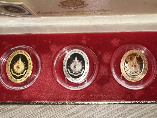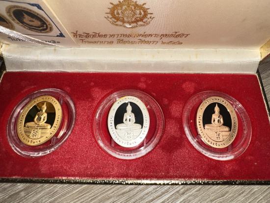 พระพุทธโสธร ภปร ที่ระลึกเปิดอาคารหลวงพ่อพระพุทธโสธร โรงพยาบาลเมืองฉะเชิงเทรา วัดโสธรวรารามวรวิหาร ปี 2542 สภาพสวยมาก พร้อมกล่องเดิม ชุด 3เหรียญ