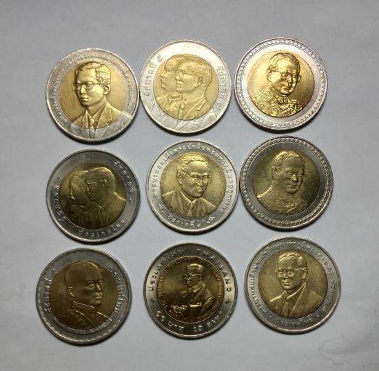 เหรียญ10บาทสองสี รัชกาลที่9มีหลายวาระมี9เหรียญมีซ้ำกัน1เหรียญ ชอบเชิญเคาะได้ครับ |