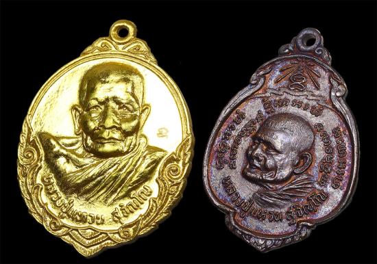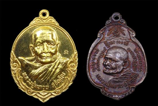เหรียญรุ่นถิ่นกำเนิด หลวงปู่แหวน สุจิณฺโณ วัดดอยแม่ปั๋ง อ.พร้าว จ.เชียงใหม่ ปี 2520 เนื้อทองแดงกะไหล่ทอง + เหรียญกรป.กลาง หลวงปู่แหวน สุจิณฺโณ วัดดอยแม่ปั๋ง ปี 2521 สภาพสวยเดิมทั้งคู่