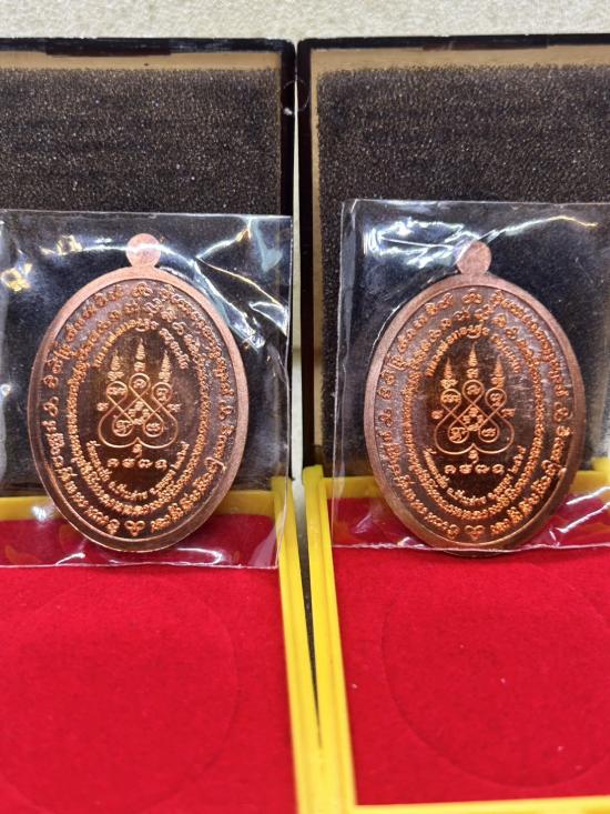 เหรียญมหาโภคทรัพย์ หลวงพ่อทองสุข เนื้อทองแดงผิวไฟส้ม หมายเลขสวย 7555 กับ 7888 จำนวน 2 เหรียญ พร้อมกล่องเดิม รับประกันตามกฎ