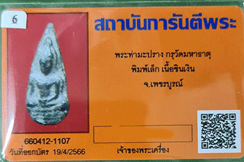 พระท่ามะปราง กรุวัดมหาธาตุ พิมพ์เล็ก เนื้อชินเงิน จังหวัดเพชรบูรณ์ เดิมๆ พร้อมบัตรรับรอง