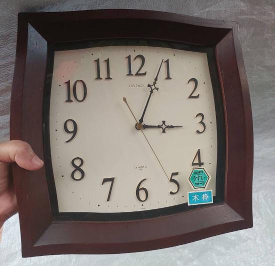 ***วัดใจ***นาฬิกาแขวนผนัง SEIKO กรอบไม้ ทรงสี่เหลี่ยม สไตล์วินเทจญี่ปุ่น Made in Japan