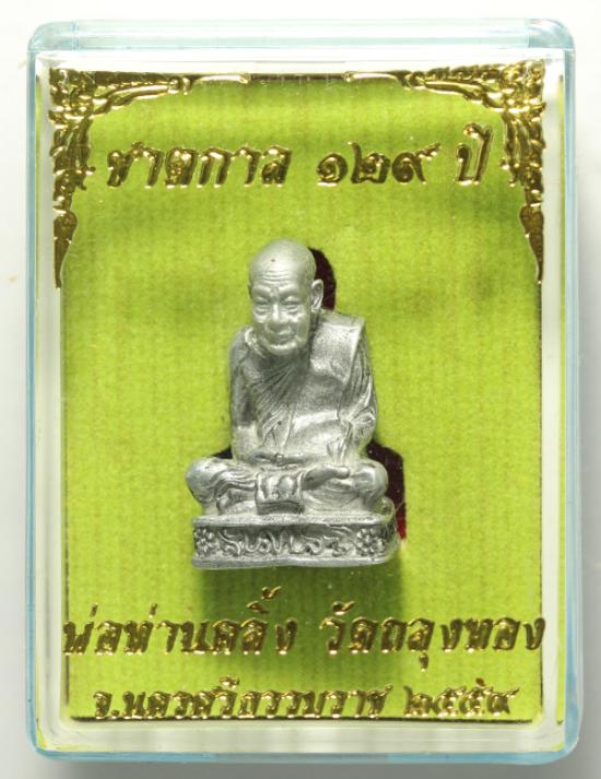 รูปหล่อลอยองค์ รุ่น ชาตกาล 129 ปี พ่อท่านคลิ้ง วัดถลุงทอง ปี 58 เนื้อ ปีกเครื่องบิน แยกชุด กรรมการเงิน ก้นดอกจัน สวยมาก กล่องเดิม