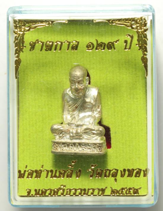 รูปหล่อลอยองค์ รุ่น ชาตกาล 129 ปี พ่อท่านคลิ้ง วัดถลุงทอง ปี 58 เนื้อ ทองขาว แยกชุด กรรมการเงิน ก้นดอกจัน สวยมาก กล่องเดิม