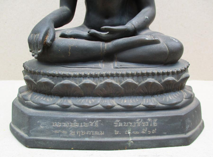 ฐานกว้าง 7 นิ้ว....ส่วนลึก 4.5 นิ้ว ใต้ฐานหล่อขอบหนา เททดินไทยดำหยอดปูนขาว ปั๊มตราวัด บ.ช.ต. และหมายเลข 68