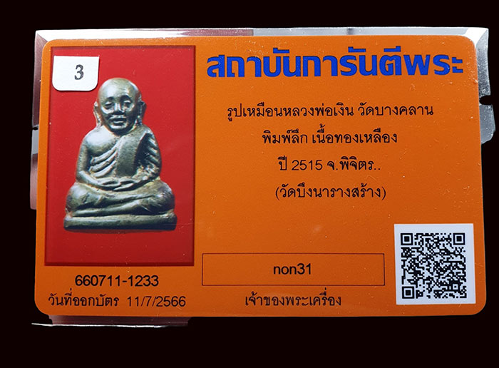 สวยแชมป์ครับ/// หลวงพ่อเงินวัดบึงนาราง ปี 15 เนื้อทองเหลือง +บัตร**1233**