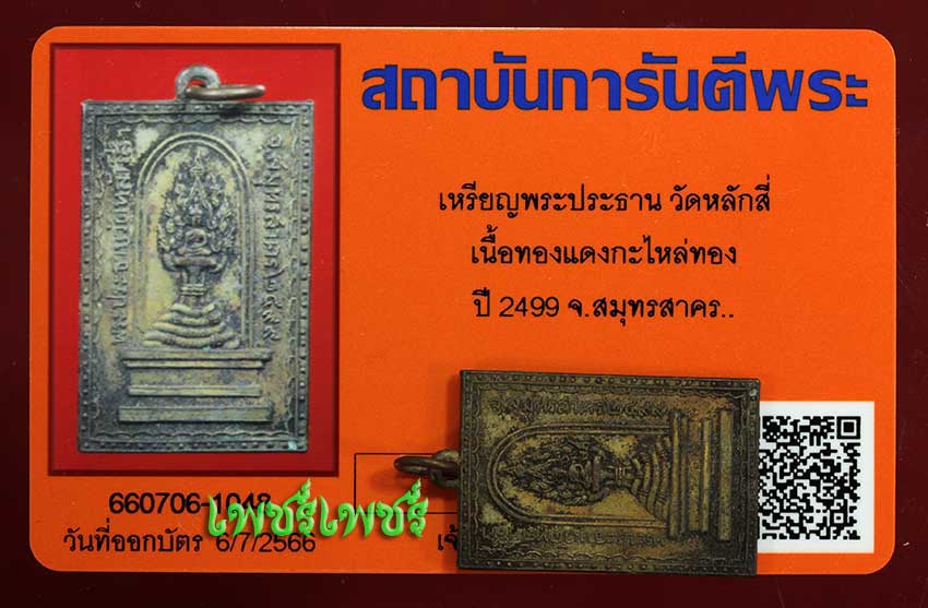 เหรียญ พระประธาน วัดหลักสี่ เนื้อทองแดงกะไหล่ทอง ปี2499 จ.สมุทรสาคร สภาพสวยกะไหล่เดิมๆ พร้อมบัตรรับรองพระแท้จากการันตีพระสบายใจได้พระแท้แน่นอน ค่ะ