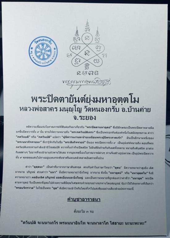 @@@ กระดาษยันต์ พระปิดตายันต์ยุ่งมหาอุตตโม หลังโค้ดตรายาง ขนาด 8 นิ้ว * 12 นิ้ว (ขนาด A4 ) หลวงพ่อสาคร มนูญโญ วัดหนองกรับ จ.ระยอง @@@