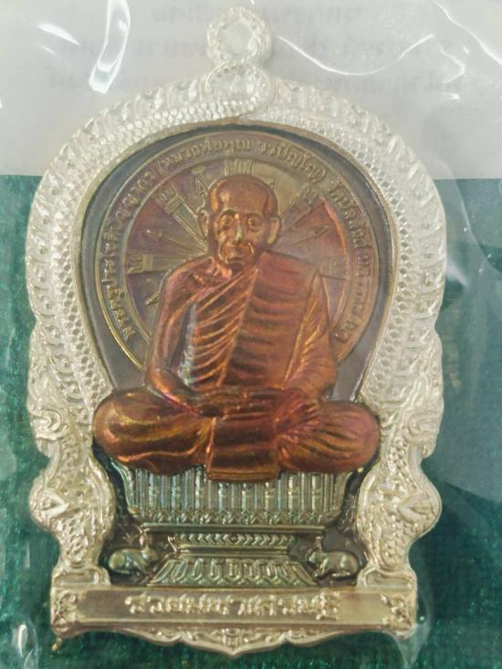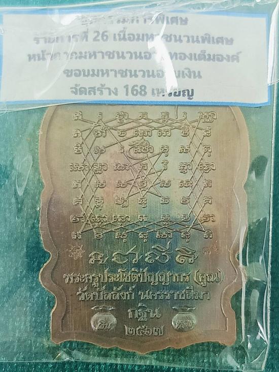 เหรียญสวย...เหรียญนั่งพาน รุ่นรวยมหาเศรษฐี หลวงพ่อคูณ วัดบัลลังก์ นครราชสีมา เนื้อมหาชนวนพิเศษ หน้ากากมหาชนวนอาบทองเต็มองค์ ขอบมหาชนวนอาบเงิน สร้าง168เหรียญ No.86