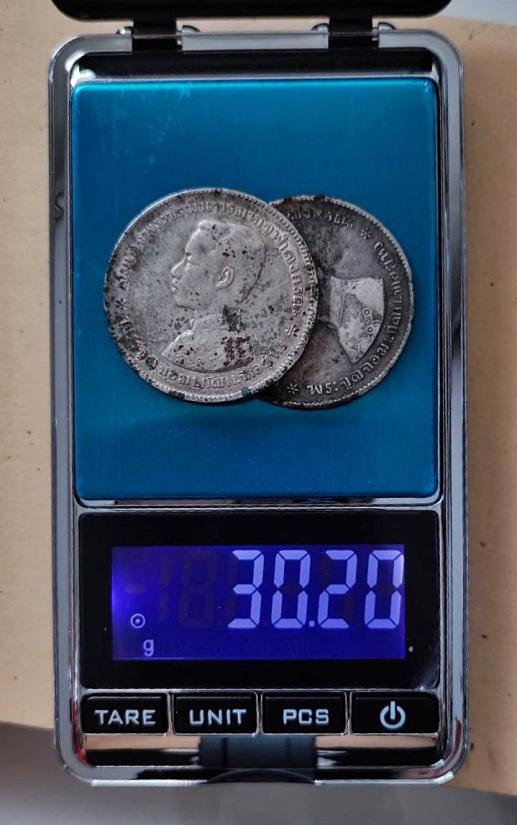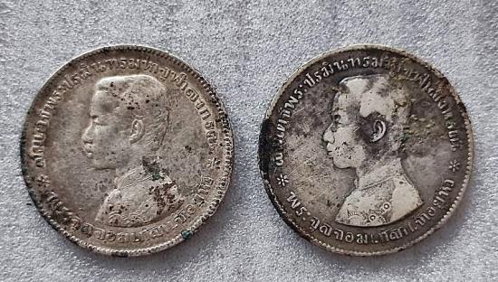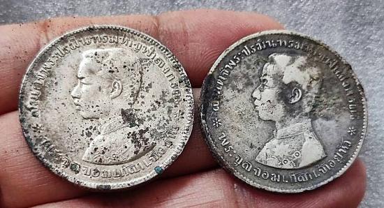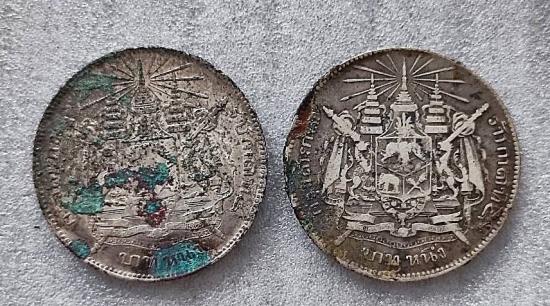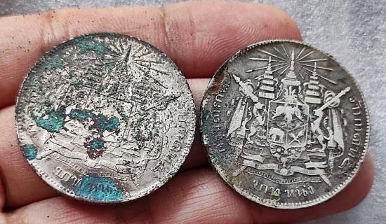 เหรียญบาทหนึ่่่ง รัชกาลที่ 5 หลังตราแผ่นดิน รวม 2 เหรียญ