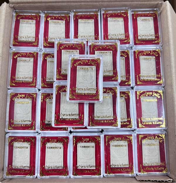 ราคาเบาๆ 100 องค์ ยกลัง(หมดแล้วหมดเลย)@@พระผงนั่งตั่งย้อนยุค เนื้อผงพุทธคุณ รุ่นรวยตลอดกาล หลังปั๊มตราวัด มีหมายเลข ปี66 หลวงปู่หมุน ฐิตสีโล วัดบ้านจาน ศรีสะเกษ พร้อมกล่องเดิม (a4)