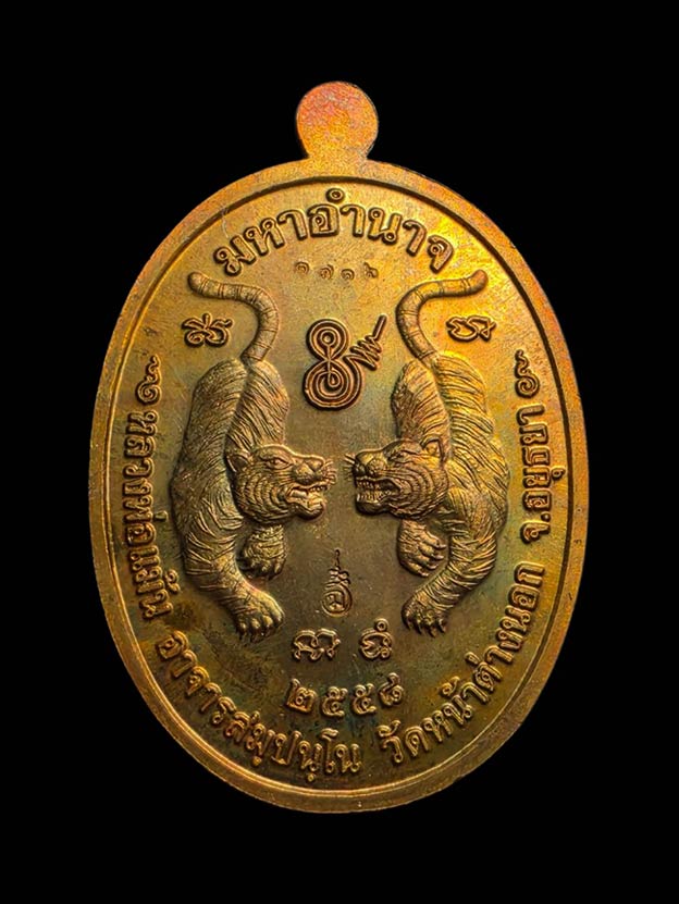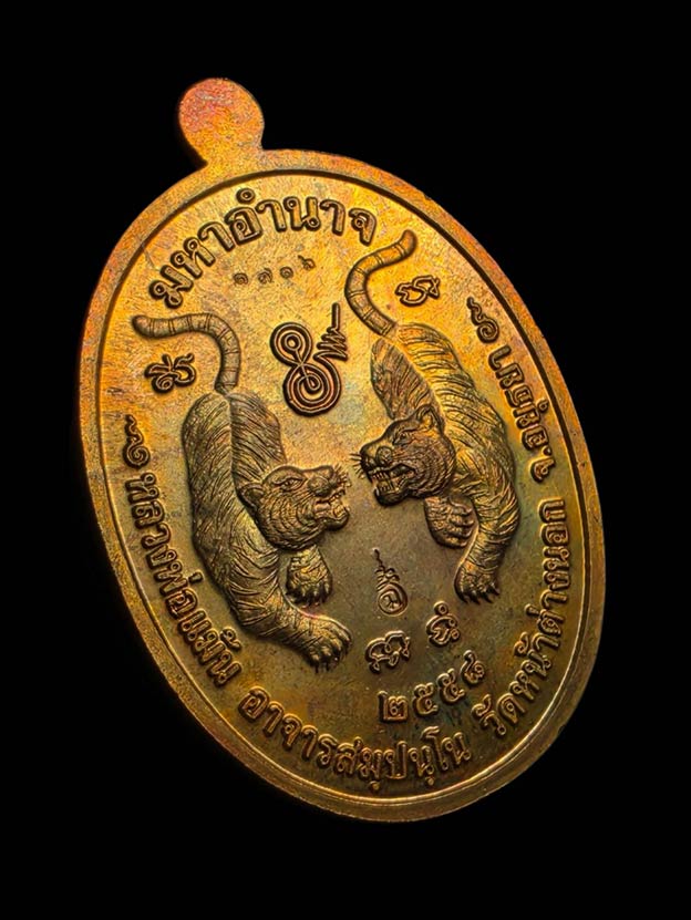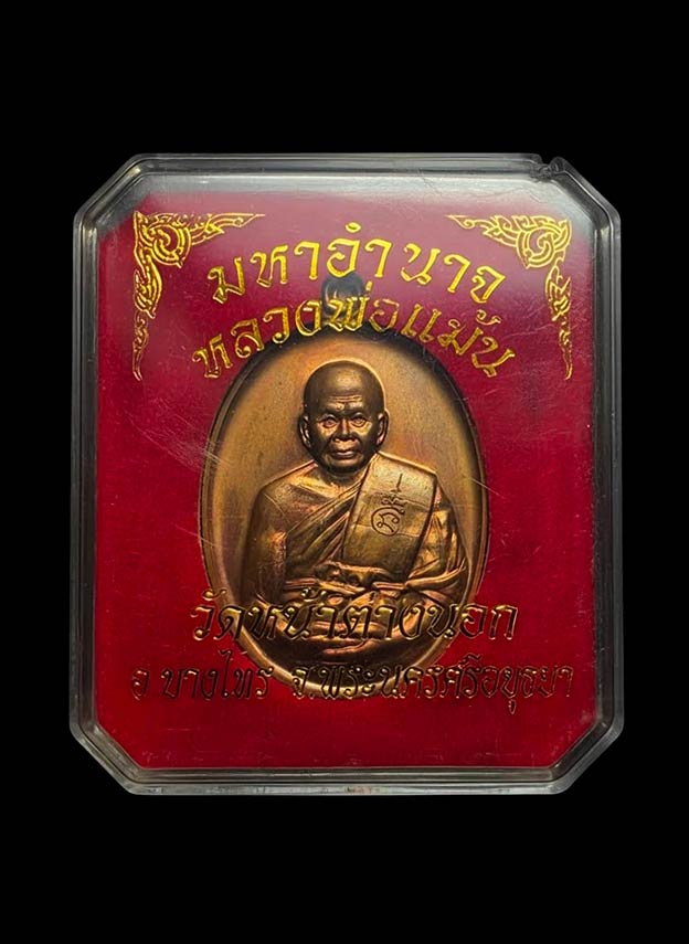 เหรียญมหาอำนาจ หลวงพ่อแม้น วัดหน้าต่างนอก เนื้อทองแดง ตอกโค๊ตและหมายเลข 1716 จ.พระนครศรีอยุธยา สวยเดิม พร้อมกล่อง