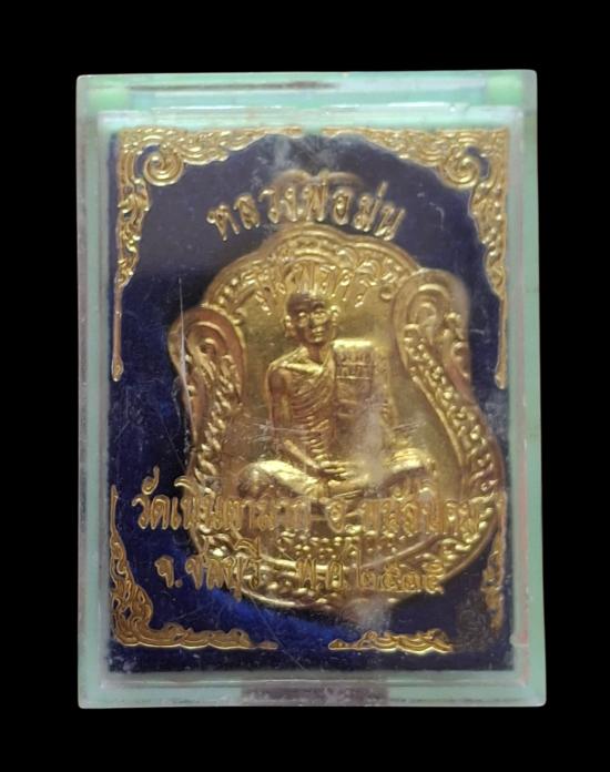 เหรียญเสมาพรศิริ ปี35 เนื้อทองฝาบาตร หลังเรียบจารมือ หลวงปู่ม่น วัดเนินตามาก จ.ชลบุรี สวย กล่องเดิมๆ.