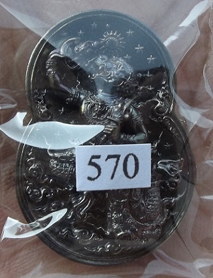 เหรียญกริ่งหนุมาน อารยสถาปัตย์ เนื้อนวโลหะ พิมพ์เล็ก หมายเลข 570 ออกแบบและควบคุมการสร้างโดยท่านอาจารย์เฉลิมชัย โฆษิตพิพัฒน์ สภาพสวยสมบูรณ์พร้อมอุปกรณ์ครบครับ