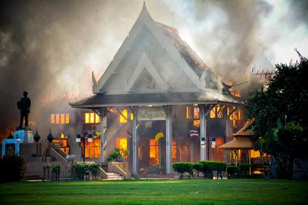สื่อข่าวรายงานว่า หลังเหตุการณ์ปี53คนรวมตัวกันบุกเผาทำลายอาคารศาลากลาง ศาลากลางจังหวัดอุบลราชธานี สิ่งที่สร้างความฮือฮาให้กับชาวเมืองหลังเพลิงไหม้ศาลากลางคือ ความศักดิ์สิทธิ์ของพญาครุฑที่เป็นเครื่องหมายของพระมหากษัตริย์ ซึ่งพระราชทานติดตั้งไว้หน้าจั่วประตูด้านหน้าทางขึ้นศาลากลาง เปลวไฟไม่สามารถเผาทำลายได้ ทั้งที่อาคารศาลากลางถูกไฟเผาเสียหายหมดทั้งหลัง