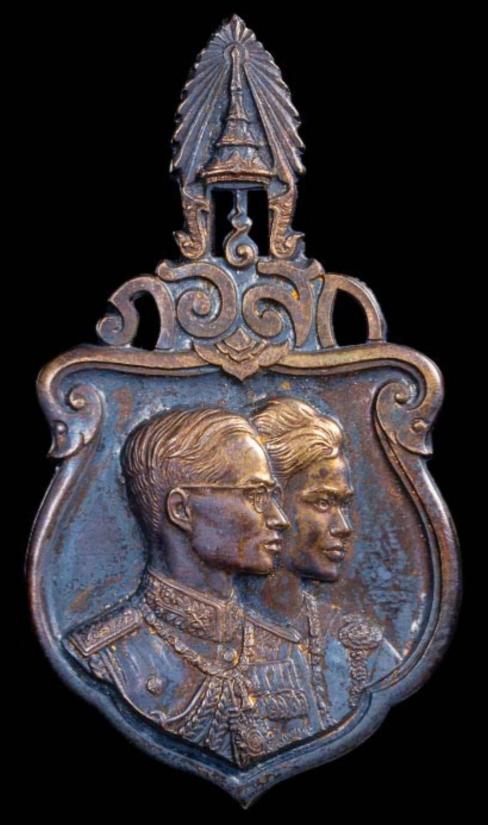 เหรียญรัชกาลที่ 9 ที่ระลึกเสด็จเยือนอเมริกาและทวีปยุโรปพิมพ์เล็ก เนื้อเงินกะไหล่ทอง ปี 2503 กรุงเทพฯ