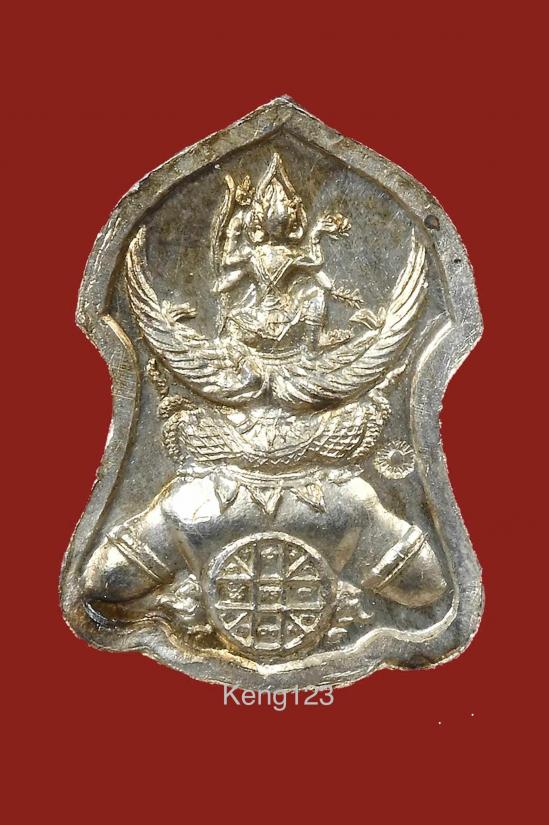 เหรียญปรกมะขามนารายณ์ทรงครุฑประทับราหู เจ้าคุณธงชัย วัดไตรมิตร เนื้อเงิน รุ่นแรก ปี2545