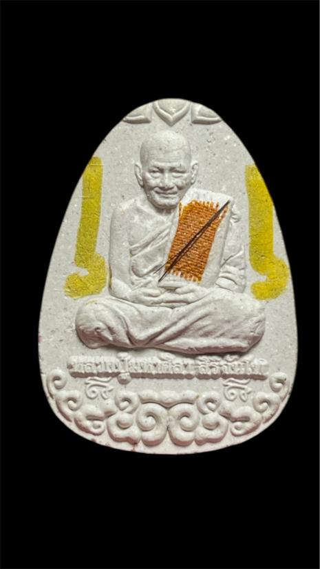 พระผงนั่งเมฆเลื่อนยศ หลวงปู่มหาศิลา สิริจันโท เนื้อขาวผงพุทธคุณจารหมึกทอง |
