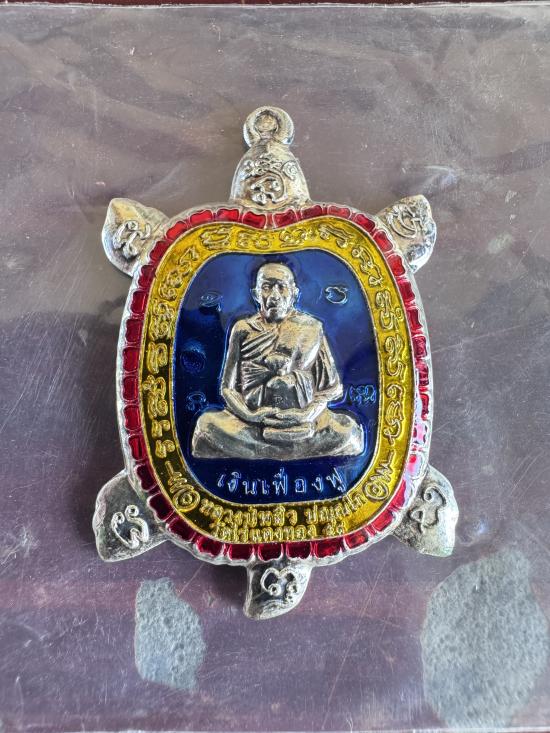 เต่าหลวงปู่หลิว รุ่นเงินเฟื่องฟู ปี2558 เนื้อกระไหล่เงินลงยา