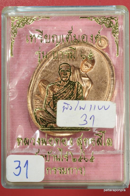 เหรียญหลวงพ่อทอง รุ่นบารมี ปี 2565 เนื้อทองแดงไม่ตัดปีกหลังแบบ หมายเลข 31