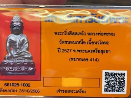 พระกริ่งติสฺสเทโว หลวงพ่อพรหม วัดขนอนเหนือ ปี ๒๕๒๗ เลข 414 รวมได้ 9