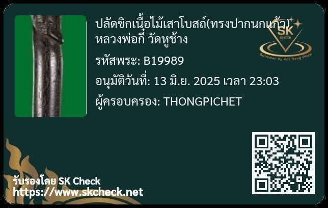 ปลัดขิกหลวงพ่อกี๋ วัดหูช้าง เนื้อไม้มงคล รอยจารอักขระ ความยาว 3 นิ้ว ออกใบรับรองต่างสถาบันฯ เนื่องจากเคยออกใบรับรองจากทางเวบฯ ไม่สรุปผล ท่านทีาชอบดูและพิจารณาก่อนนะครับ(จะได้ไม่ต้องเสียเวลาภายหลัง เรื่องขอส่งไปตรวจสอบ) เครื่องรางมีเสน่ห์ของตนเอง รับประกันความแท้ตามหลักสากลมาตรฐานครับ