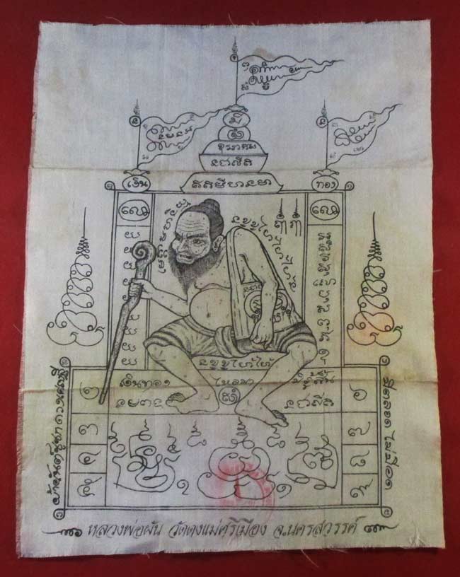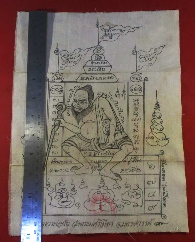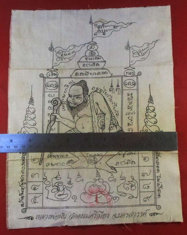 ผ้ายันต์ชูชกเก่า ติดร้านค้า หรือพกติดตัว เรียกโชคเรียกลาภ เรียกคนเข้าร้าน ค้าขายดี คนเข้าร้านค่าไม่มีขาด เรียกทรัพย์(หลวงพ่อผัน วัดแม่ศรีเมือง จ.นครสวรรค์