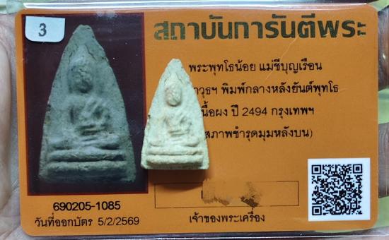 พระพุทโธน้อยพิมพ์กลางรุ่นแรกปี 2494 คุณแม่บุญเรือนอธิษฐานพร้อมบัตรการันตี