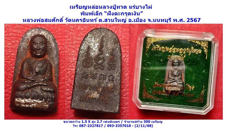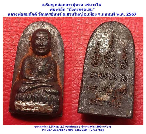 เหรียญหล่อหลวงปู่ทวด แร่บางไผ่ พิมพ์เล็ก ฝังตะกรุดเงิน หลวงพ่อสมศักดิ์ วัดนครอินทร์ ต.สวนใหญ่ อ.เมือง จ.นนทบุรี พ.ศ.2567