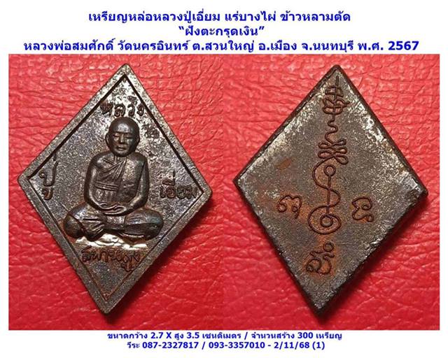 เหรียญหล่อหลวงปู่เอี่ยม แร่บางไผ่ ข้าวหลามตัด ฝังตะกรุดเงิน หลวงพ่อสมศักดิ์ วัดนครอินทร์ ต.สวนใหญ่ อ.เมือง จ.นนทบุรี พ.ศ. 2567