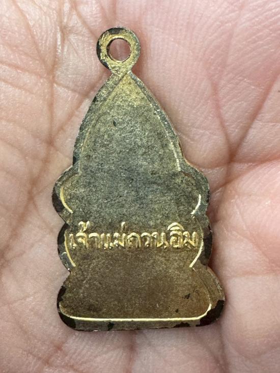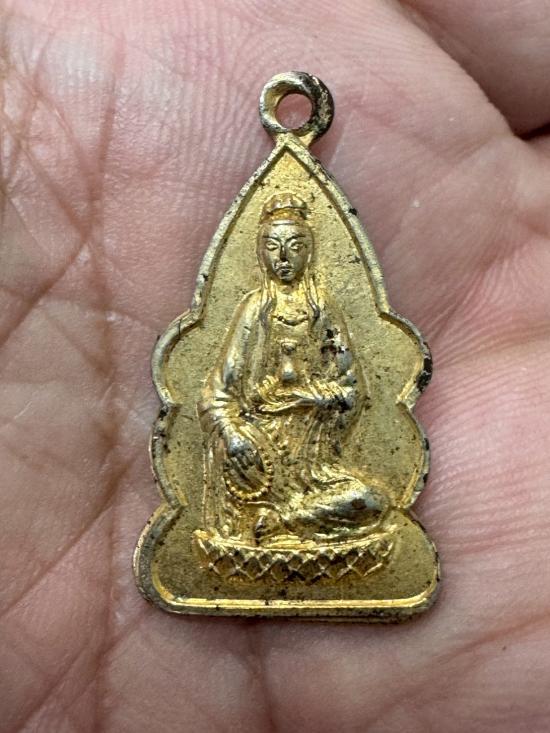 เหรียญเจ้าแมากวนอิม เนื้อกะไหล่ทอง ด้านหลังมีชื่อ เจ้าแม่กวนอิม
