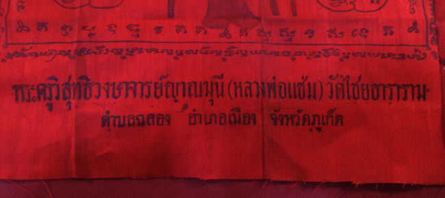 ผ้ายันต์ หลวงพ่อแช่ม วัดไชยธาราราม ต.ฉลอง อ.เมือง จ.ภูเก็ต ครับ