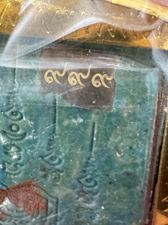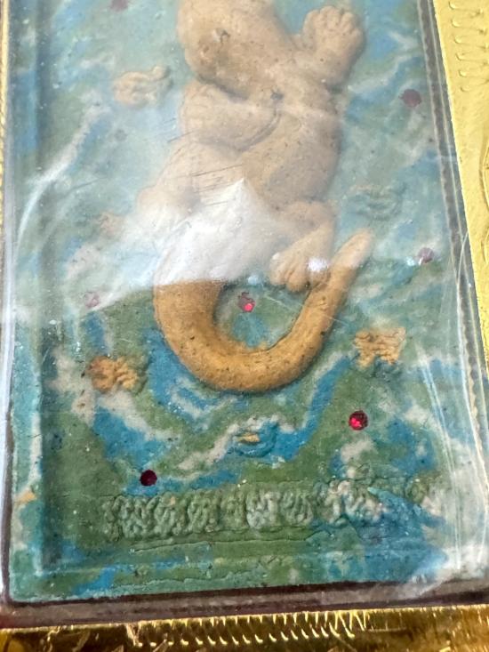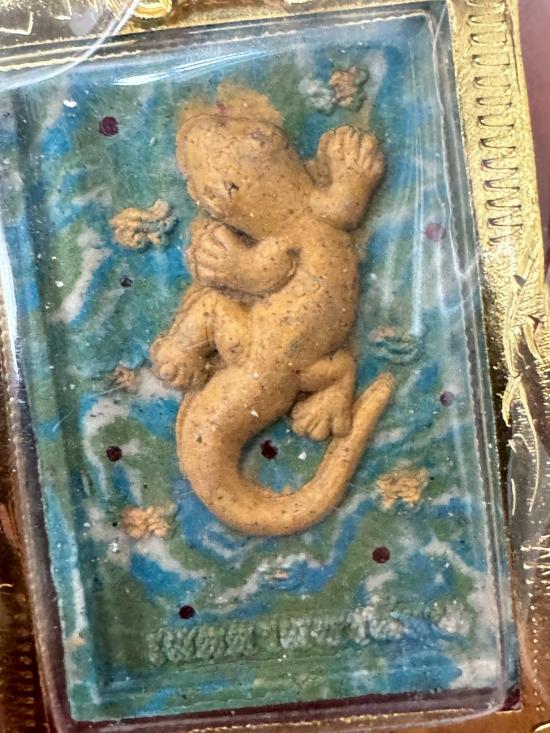 พระผงจิ้งจก 1 หาง เนื้อก้นครกว่านเสน่ห์จันทร์เขียว เลี่ยมกรอบ หมายเลข 999 หลวงปู่ฝั้น รุ่นเมตตามหานิยม วัดศรีทมอรัตน์ เพชรบูรณ์