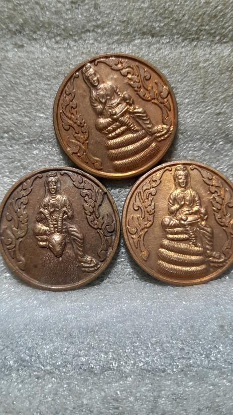 วัดใจเคาะเดียว.......100......เหรียญเจ้าแม่กวนอิม หลังยันต์ 8 ทิศ อยู่เย็นเป็นสุข รวม 3 เหรียญ
