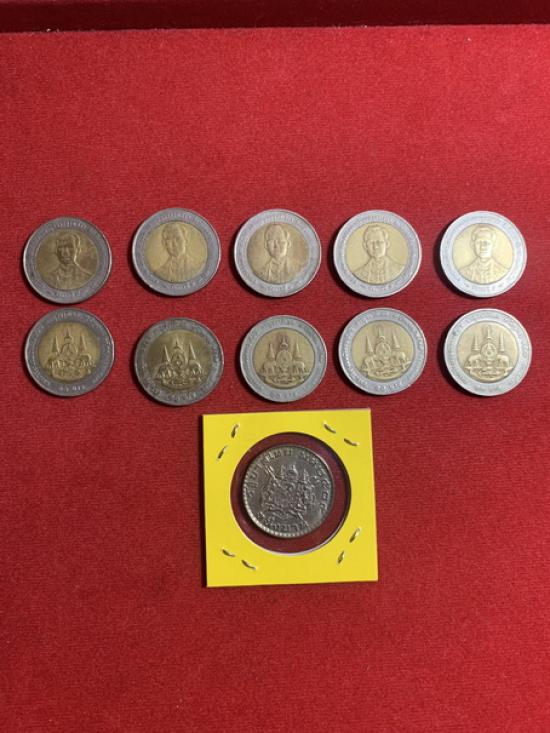 เหรียญกาญจนาภิเษก ในหลวงรัชกาลที่ 9 จำนวน 10 เหรียญ + เหรียญ 1 บาท