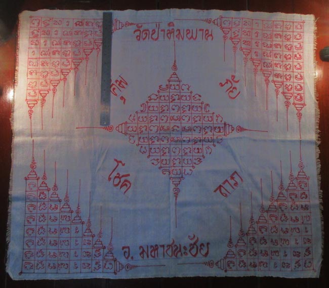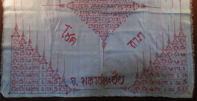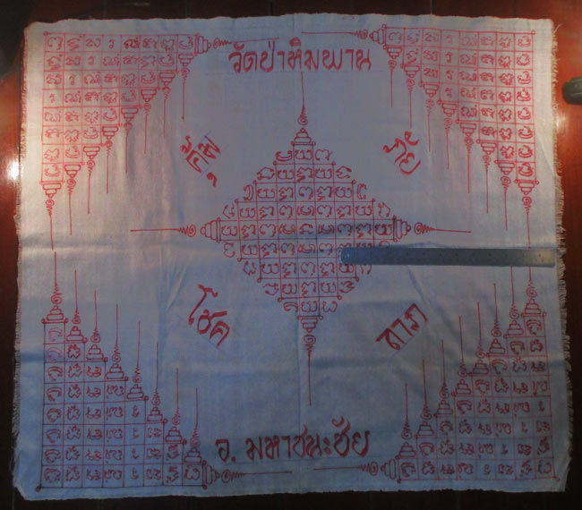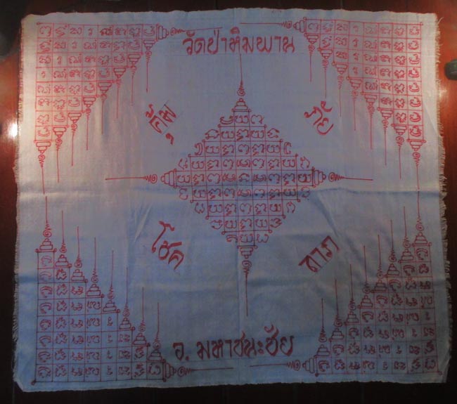 ผ้ายันต์ อ.มหาชนะชัย วัดป่าหิมพาน จารยันต์ด้วยมือ ครับ (พระบ้าน ครับ)