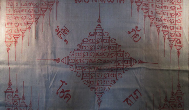 ผ้ายันต์ อ.มหาชนะชัย วัดป่าหิมพาน จารยันต์ด้วยมือ ครับ