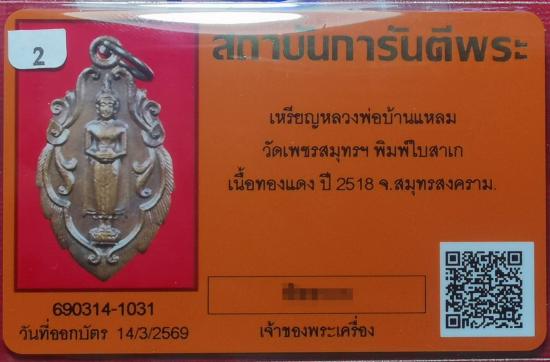 เหรียญใบสาเก ลพ.บ้านแหลม วัดเพชรสมุทรฯ เนื้อทองแดง ปี2518 จ.สมุทรสงคราม มาพร้อมบัตรรับรอง
