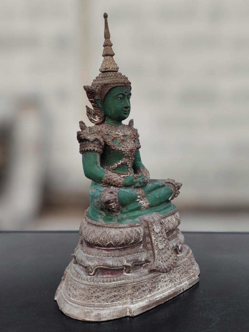 พระบูชาพระแก้วทรงเครื่อง ปลายเกศถอดได้ หน้าตัก 5 นิ้วสภาพสมบูรณ์ไม่มีซ่อมตามรูป
