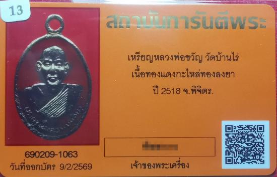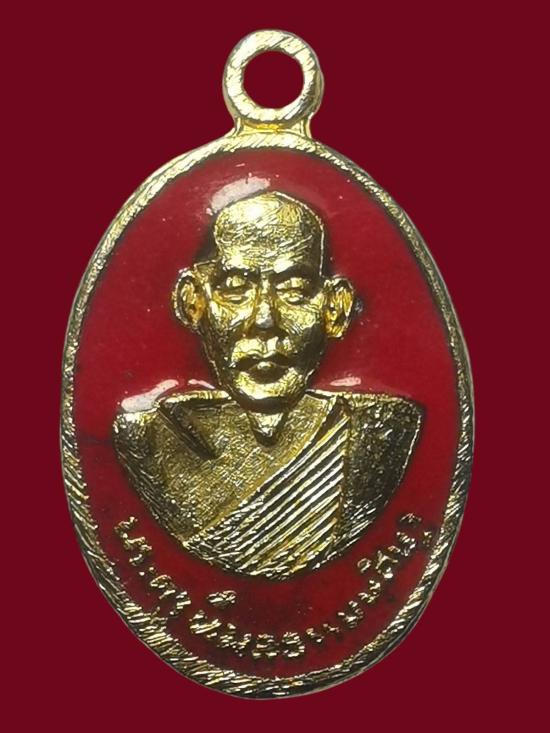 เหรียญ ลพ.ขวัญ วัดบ้านไร่ เนื้อกะไหล่ทองลงยาสีแดง ปี2518 จ.พิจิตร มาพร้อมบัตรรับรอง