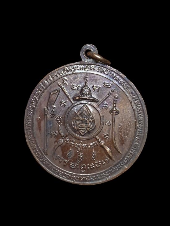 เหรียญกลม พระนเรศวรมหาราช ต้านศึก ศาลปากน้ำประแสร์ จ.ระยอง ปี 2515 เนื้อทองแดงรุ้งผิวสวยเดิมๆ พิธีใหญ่ เกจิร่วมปลุกเสกมากมาย